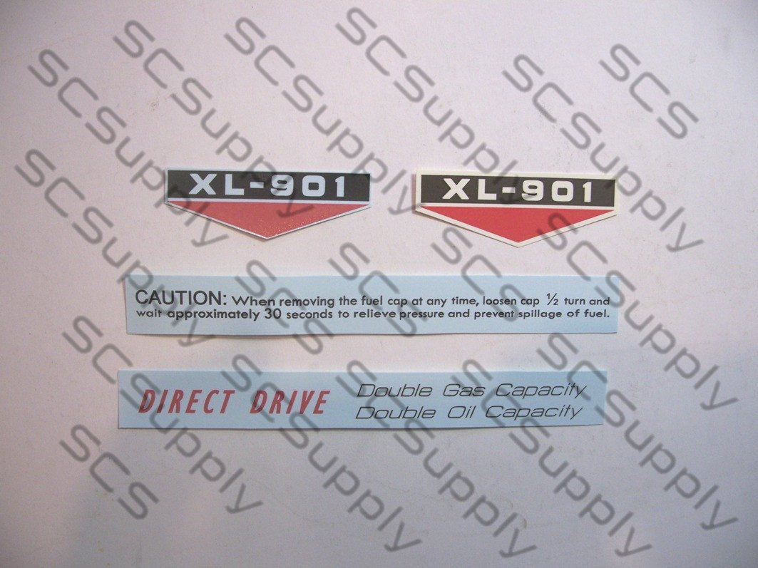 Note: The XL-901 early flywheel cover is shown below. Please note the location of the FW side decal which is the decal on clear background. The decal for the drive case side is on white background.
